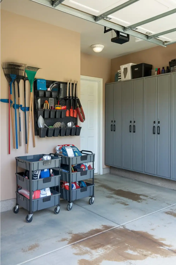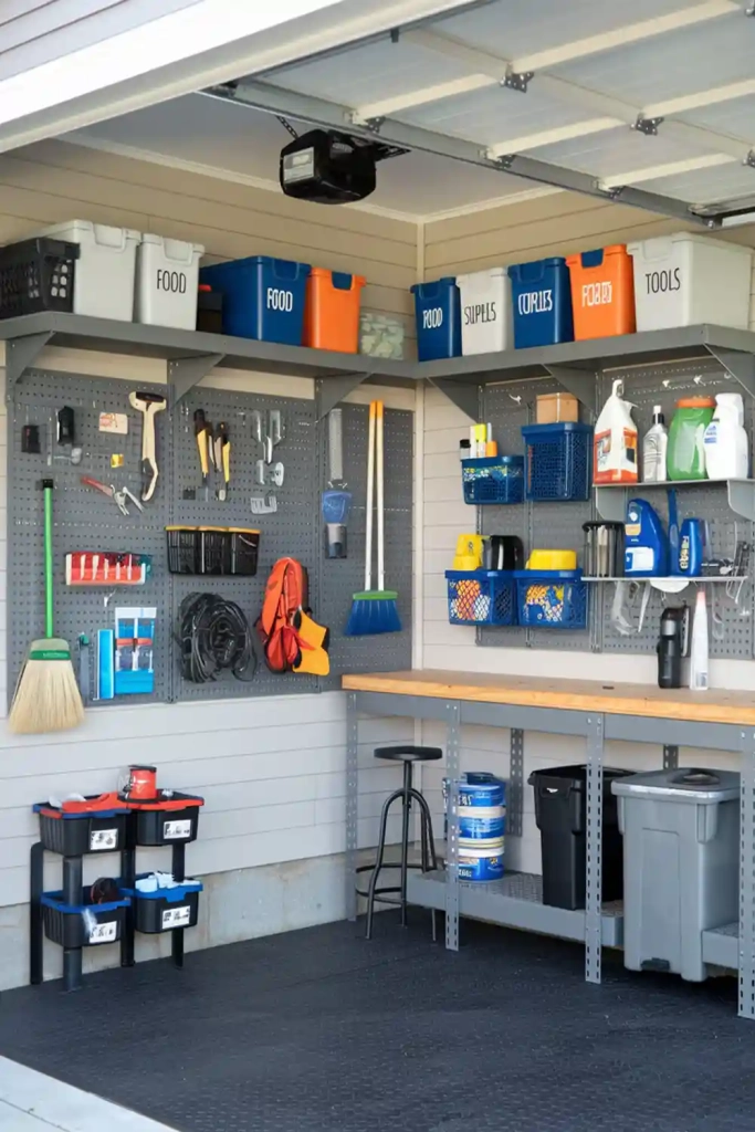 I will not even pretend that overhead storage racks have not revolved my whole garage revolution. I have these installed and they are really high up towards the ceiling and I keep all the large and seasonal items in there, for example the holiday season decor and the camping gears. They are very ideal for things that are not essential for use on a routine basis. One must use appropriate containers that have labels on them so that it is easy to pick what is required without going through the rest. Itโs such a simple fix that makes a huge difference!