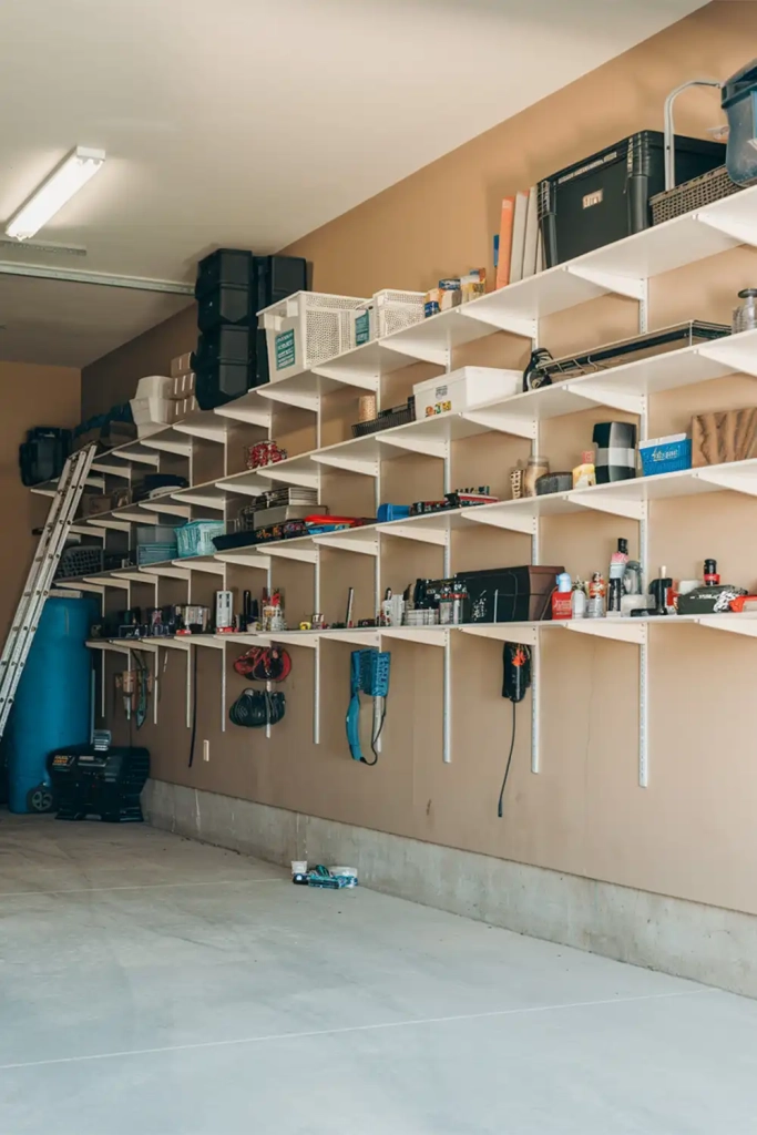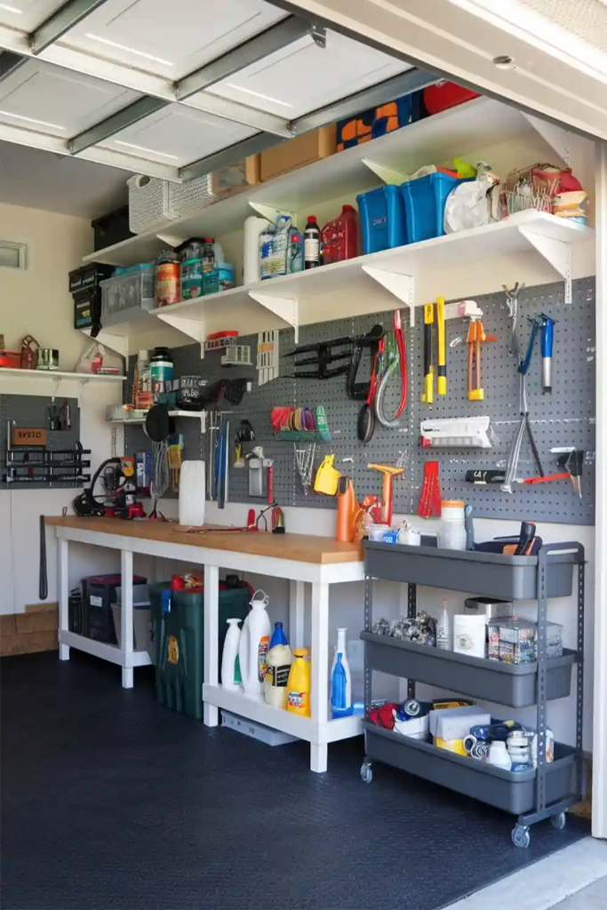 In this case, wall-mounted shelves have come to our rescue. I constructed shelves all around the walls and in this way, easily organized my things and also saved floor space. Those randoms such as keeping cleaning stuff and car repair tools that have no known specific home, can now be kept comfortably. Also, there is no denying that there is great assistance in keeping the garage organized and can be walked on, thanks to elevating things off the floor.